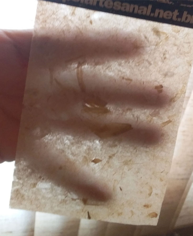 Secagem: As folhas são retiradas dos moldes e deixadas para secar ao sol. Podem também ser secadas no próprio quadro.